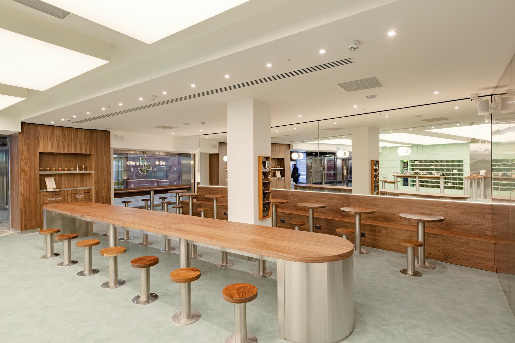 Our Canary Wharf store is designed for momentum. A modern, sleek space that mirrors the area’s futuristic feel, built to handle the daily rush without ever feeling rushed. It’s one of our largest sites yet, with plenty of room to sit down and recharge - including a long communal table made for team lunches, catch-ups and quick refuels between meetings.